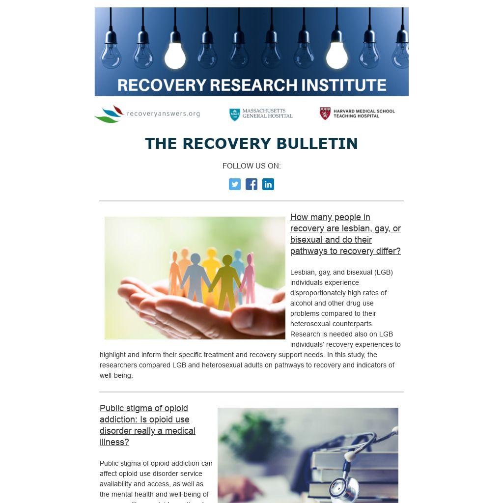 ABOUT: The Recovery Research Institute is a non-profit research institute of the Massachusetts General Hospital, a teaching hospital of Harvard Medical School.