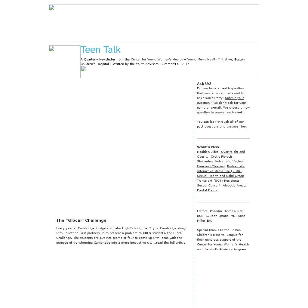 Special thanks to the Boston Children's Hospital League for their generous support of the Center for Young Women's Health and the Youth Advisory Program