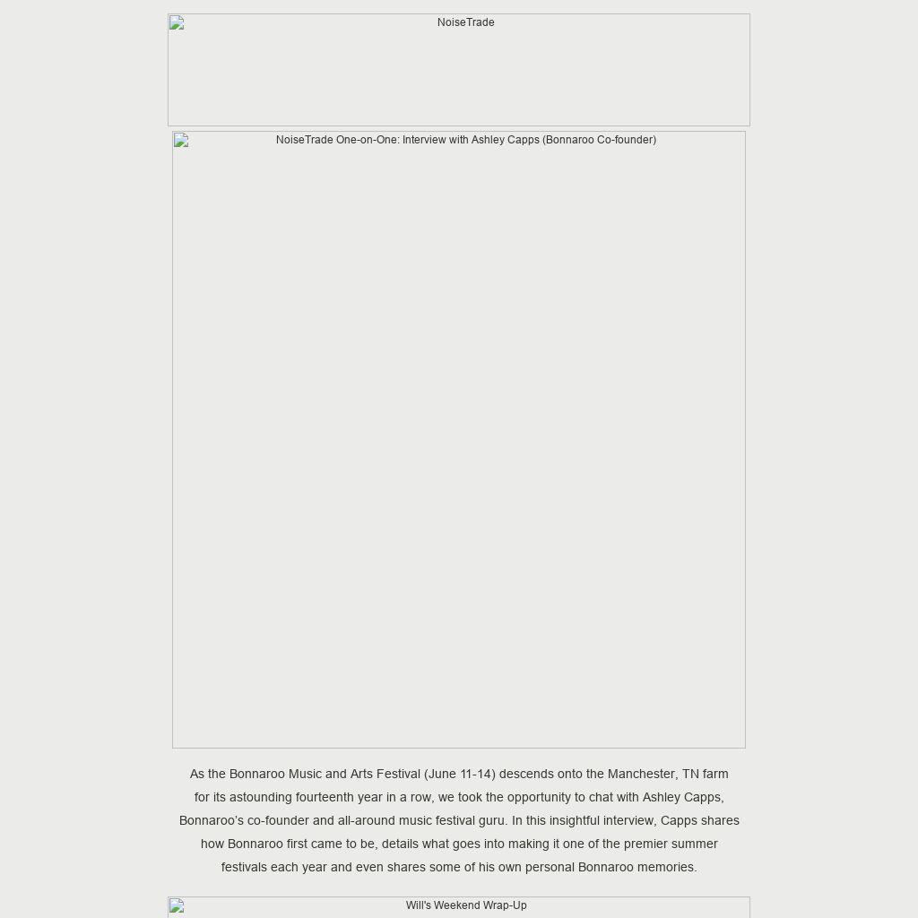 Hey there, hi there, ho there, my friends! I hope this missive finds you well and that all is dandy in your little corner of the world. If you’re gearing up to attend Bonnaroo this June, we’ve got a couple of early ‘Roo-themed goodies for you before you head out to the farm. First, be sure to nab our HUGE 38-track Bonnaroo Mixtape 2015 sampler featuring Against Me!, Brandi Carlile, Twenty One Pilots, Rhiannon Giddens, Guster, Courtney Barnett, and many, many more. Second, don’t miss our interview with Bonnaroo co-founder and music festival guru Ashley Capps. Alrighty, get into all the things! – WILL HODGE, NoiseTrade Music Editor