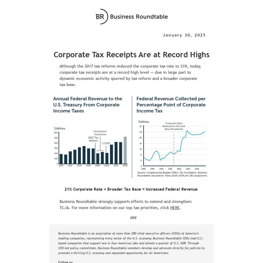 Business Roundtable is an association of more than 200 chief executive officers (CEOs) of America’s leading companies, representing every sector of the U.S. economy. Business Roundtable CEOs lead U.S.-based companies that support one in four American jobs and almost a quarter of U.S. GDP. Through CEO-led policy committees, Business Roundtable members develop and advocate directly for policies to promote a thriving U.S. economy and expanded opportunity for all Americans.