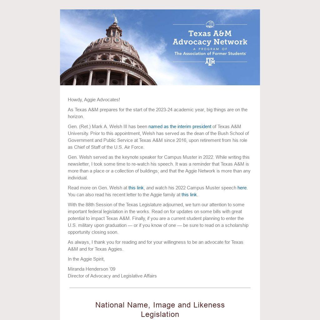 As always, I thank you for reading and for your willingness to be an advocate for Texas A&M and for Texas Aggies.