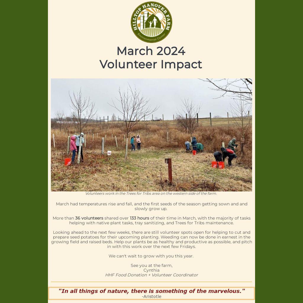More than 36 volunteers shared over 133 hours of their time in March, with the majority of tasks helping with native plant tasks, tray sanitizing, and Trees for Tribs maintenance.