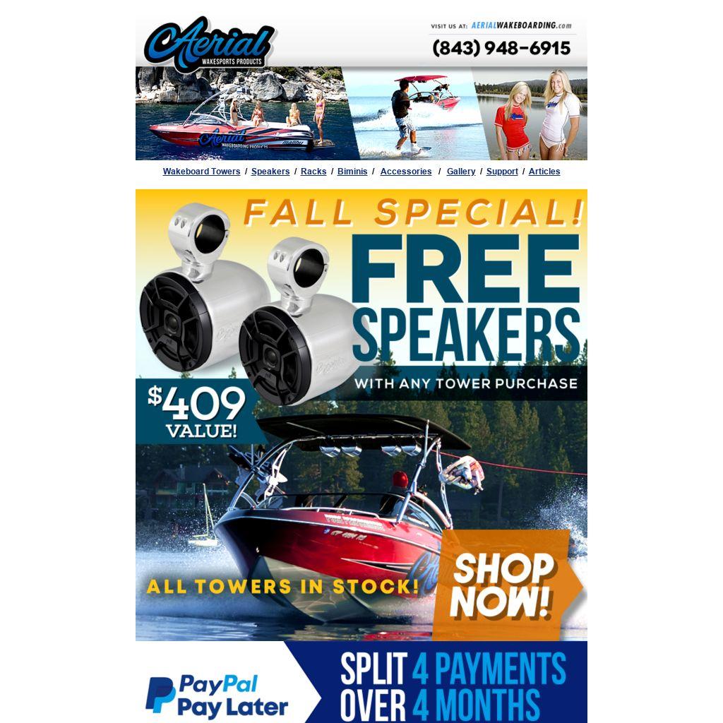 Free $409 speakers, 20% off package upgrades, 15% off other accessories...
