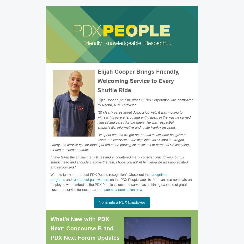 Elijah Cooper (he/him) with SP Plus Corporation was nominated by Raena, a PDX traveler.