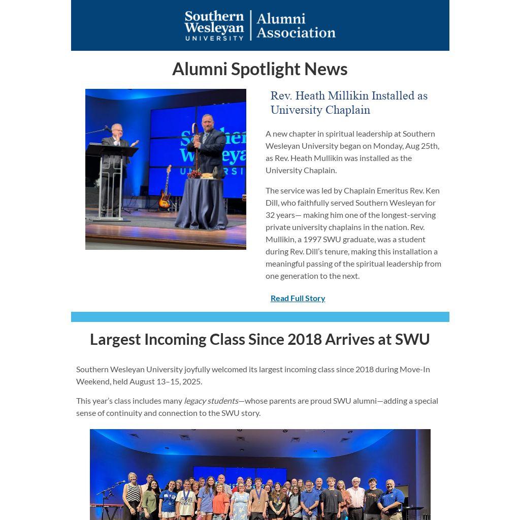 | The Southern Wesleyan University Alumni Association is here to assist all alumni in a spirit of Christian service.