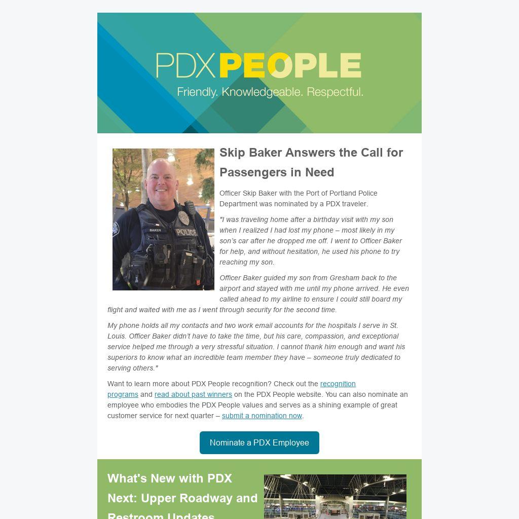 Officer Skip Baker with the Port of Portland Police Department was nominated by a PDX traveler.