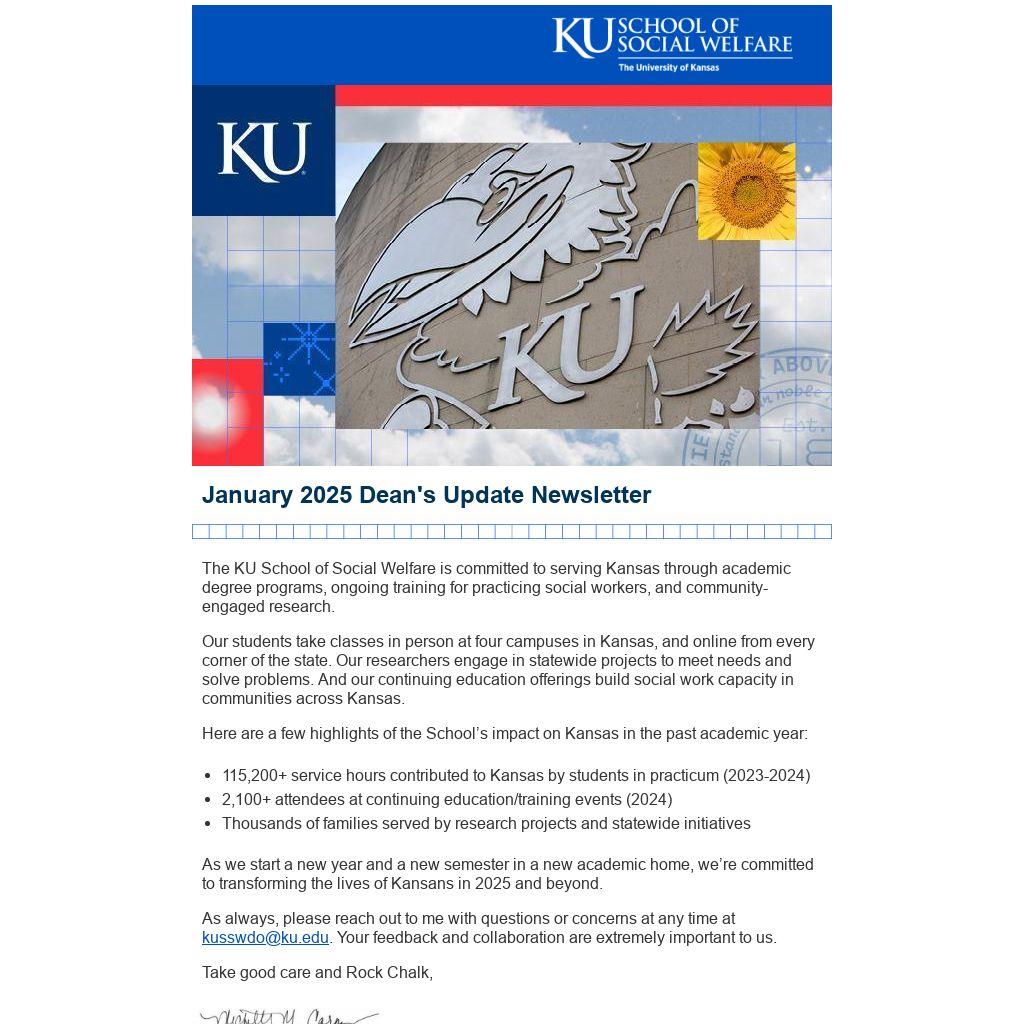 As always, please reach out to me with questions or concerns at any time at kusswdo@ku.edu. Your feedback and collaboration are extremely important to us.