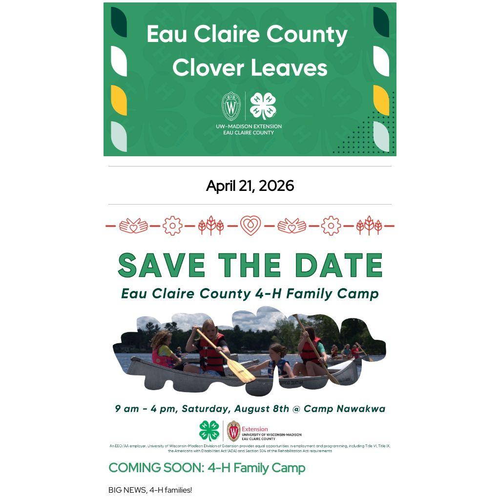 Leaders Association Meetings are held at the Eau Claire County Extension office the 2nd Tuesday of September, November, January, March, May, and June. 6:00pm will be a time to hear policy updates, ask the 4-H educator questions, and brainstorm club ideas. Meetings will start at 6:30pm. PLEASE make every effort to send a representative to these meetings. Attending is how we make connections and learn from each other to bring the best program we can to the young people in our clubs. It connects your local club program to the wider county program and makes you aware of the wider opportunities in 4-H so that you can promote those to your club members.
