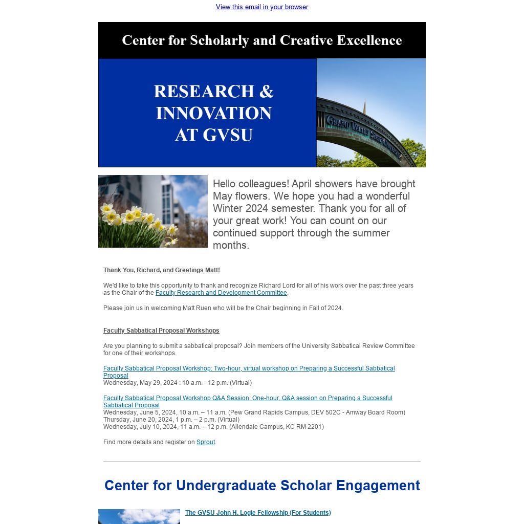 | Hello colleagues! April showers have brought May flowers. We hope you had a wonderful Winter 2024 semester. Thank you for all of your great work! You can count on our continued support through the summer months.