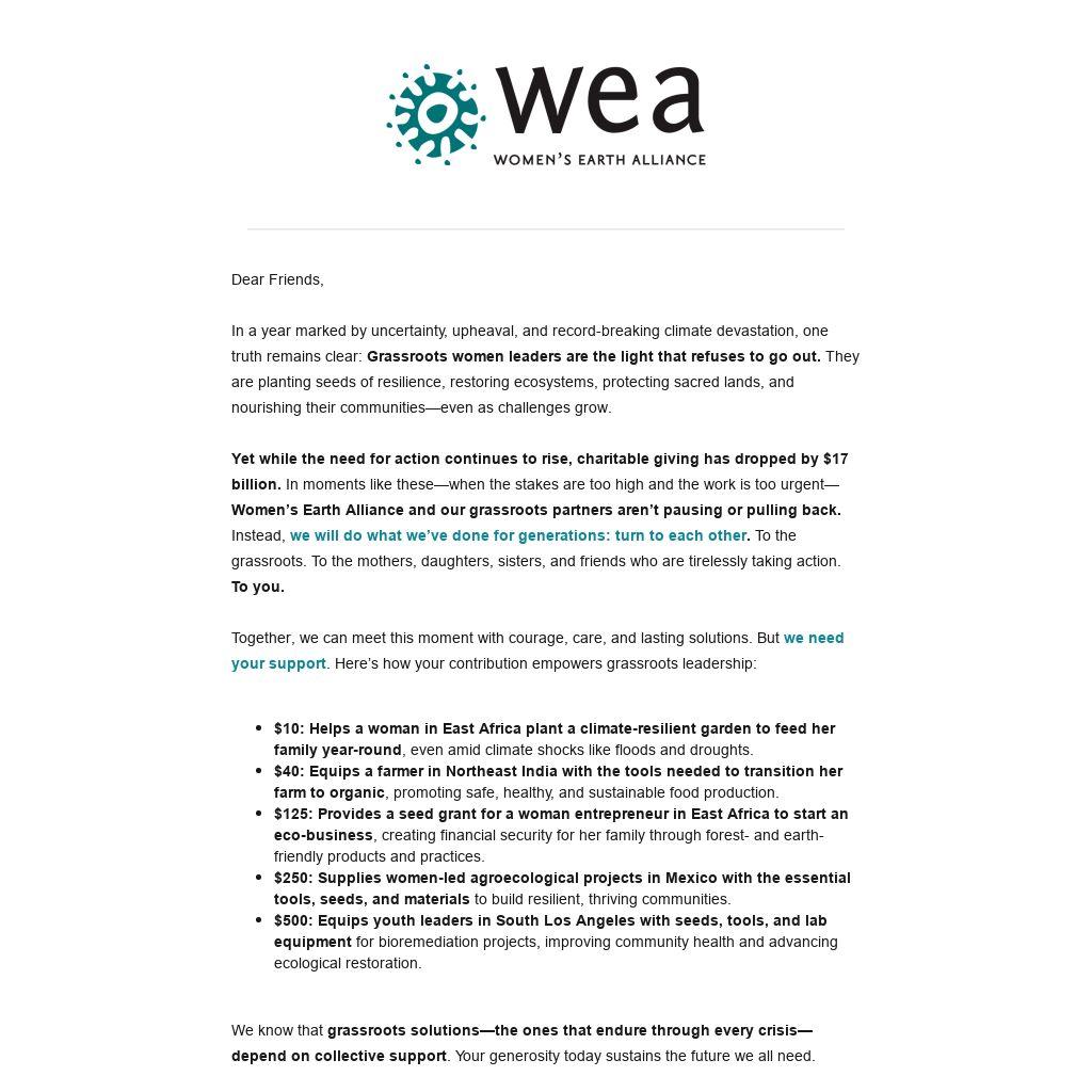 We know that grassroots solutions—the ones that endure through every crisis—depend on collective support. Your generosity today sustains the future we all need.