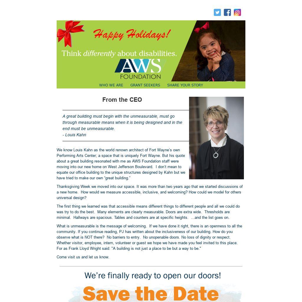 Jenny - My favorite part about the new building is the art work and photography displayed all over the building that either portrays the work of someone with a disability or showcases inclusive programming in Northeast Indiana. It is a daily reminder of the great work our grantees do and the potential that exists for so many when provided the right supports!