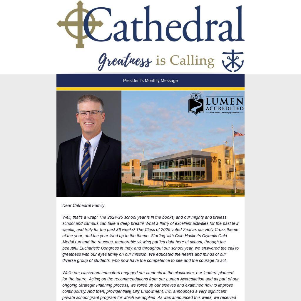 Later this calendar year, we'll be recognizing educators who reached milestones in their years of service to Cathedral. Thank you to all of the educators for their excellent and tireless service to Cathedral High School.