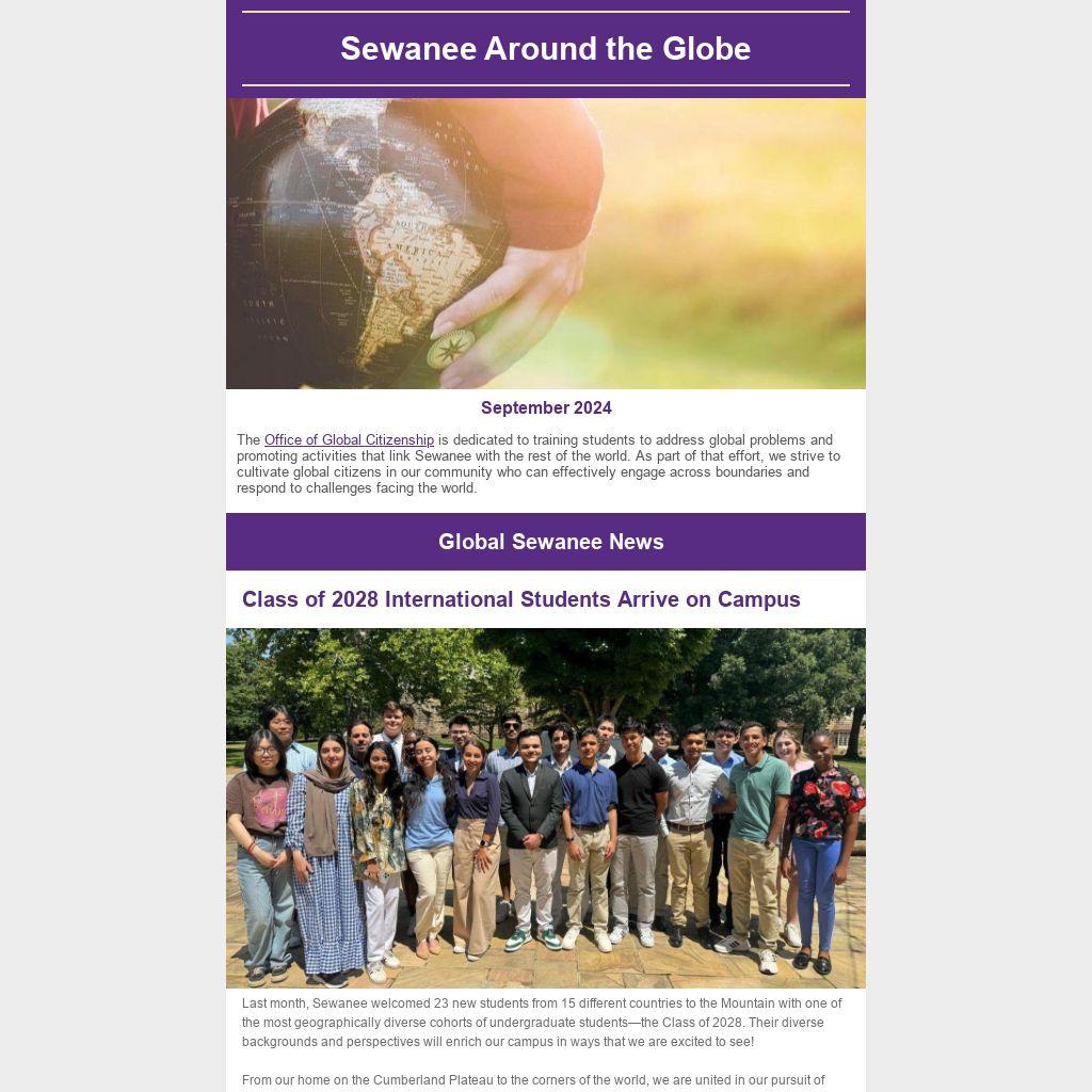 The Office of Global Citizenship is dedicated to training students to address global problems and promoting activities that link Sewanee with the rest of the world. As part of that effort, we strive to cultivate global citizens in our community who can effectively engage across boundaries and respond to challenges facing the world.