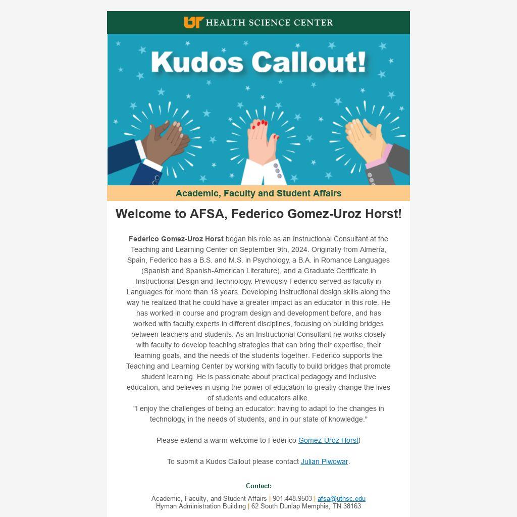 Academic, Faculty, and Student Affairs | 901.448.9503 | afsa@uthsc.edu