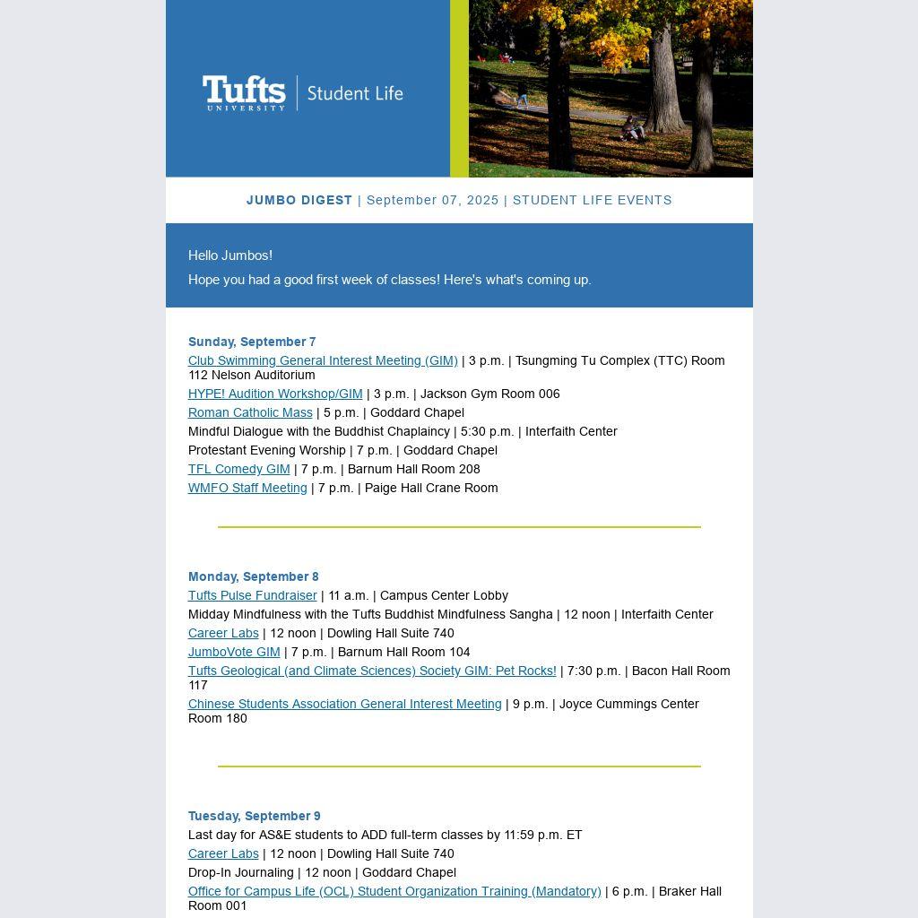 JUMBO DIGEST | September 07, 2025 | STUDENT LIFE EVENTS | |
