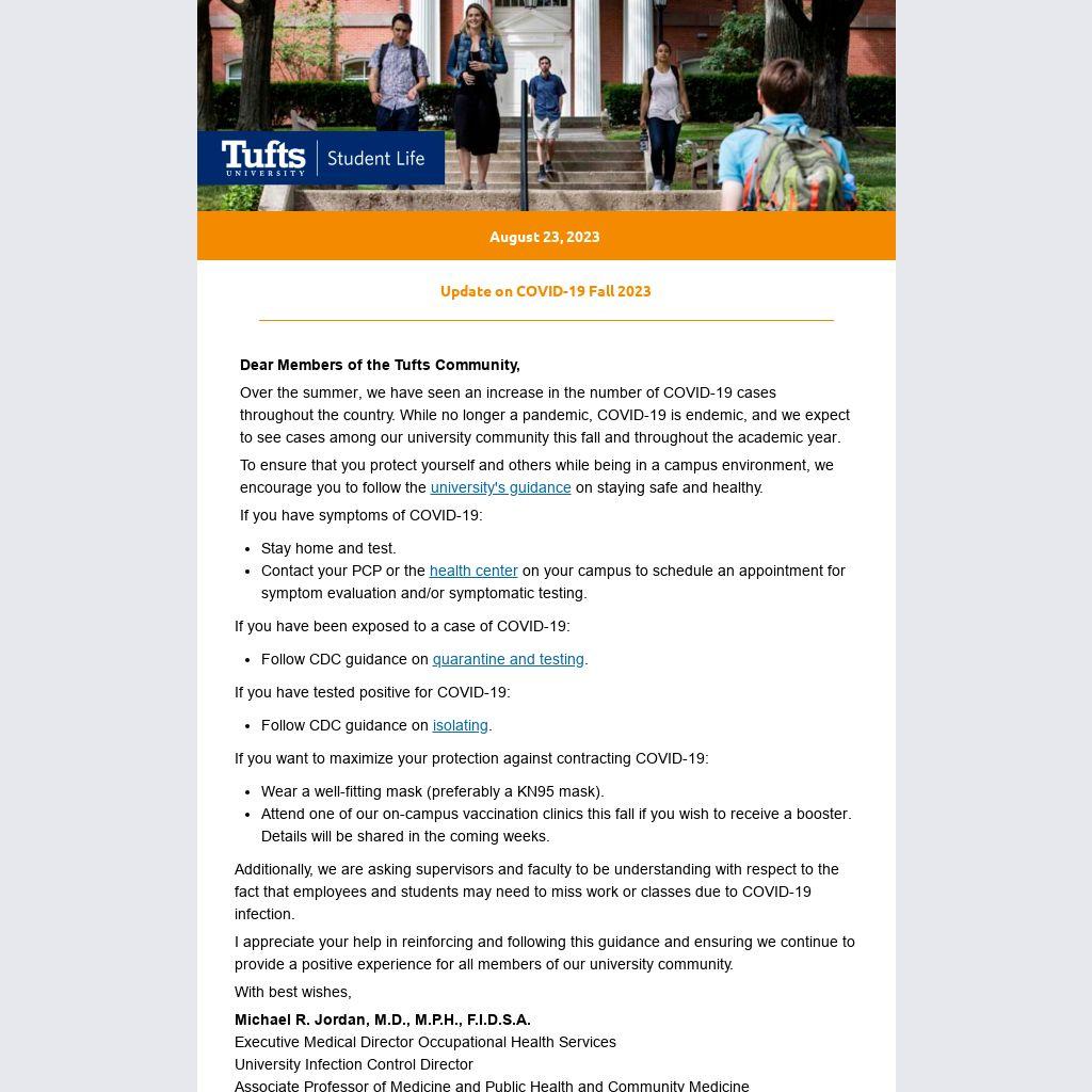 Over the summer, we have seen an increase in the number of COVID-19 cases throughout the country. While no longer a pandemic, COVID-19 is endemic, and we expect to see cases among our university community this fall and throughout the academic year.