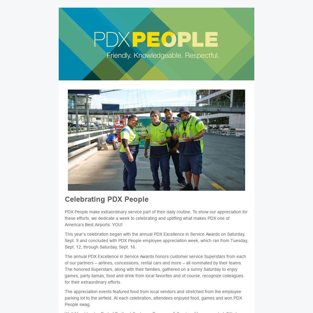 From roadway to runway and concourse to construction, your hard work and commitment to upholding our values are appreciated. Thank you, PDX People!
