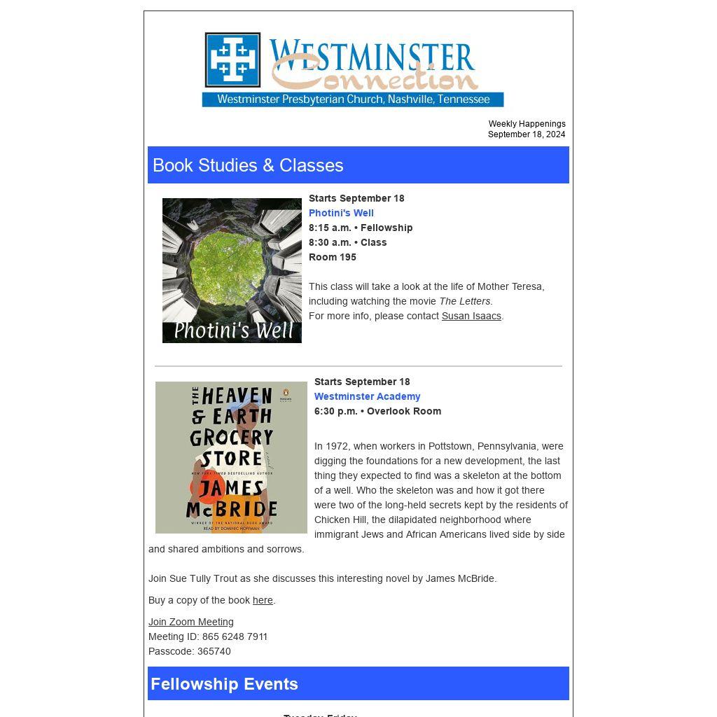 Here is what Wednesday night dinners will look like for October, November and December. Look for sign-up links soon.