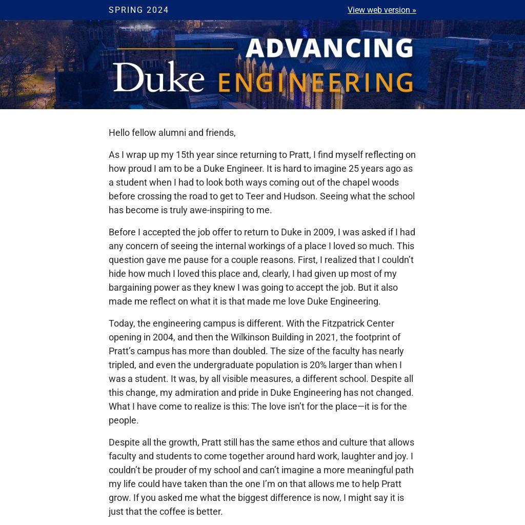 Thank you all for your support of Duke and the pride we share as Duke Engineers.
