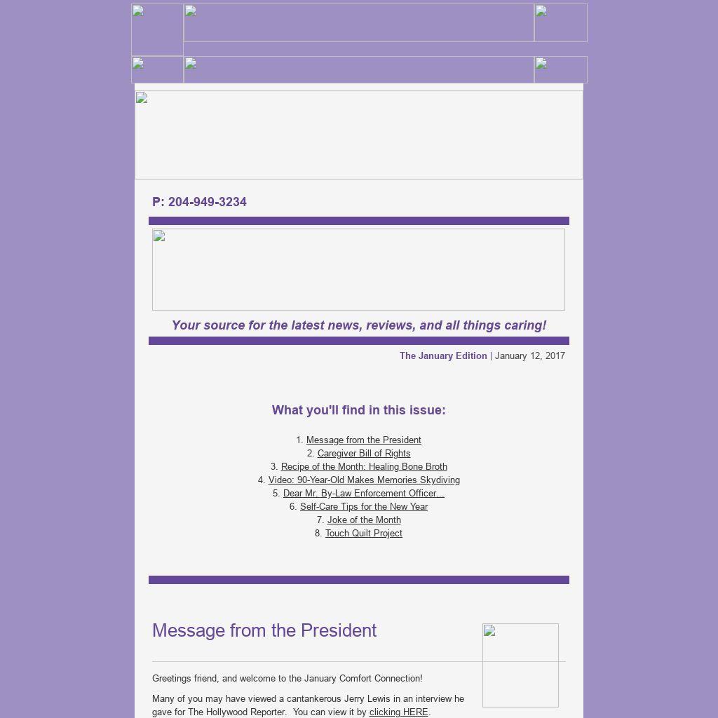 Greetings friend, and welcome to the January Comfort Connection!