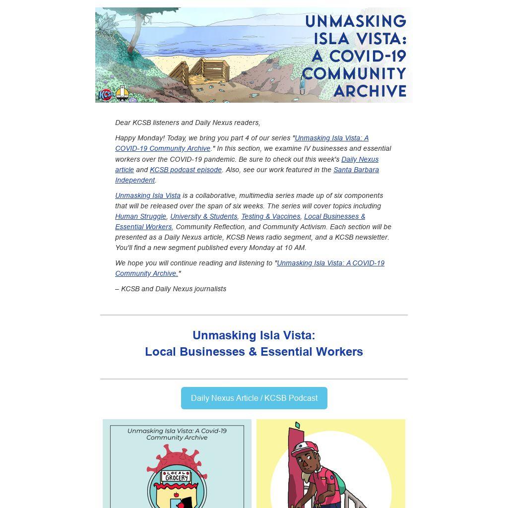 Report for KCSB News! No experience is necessary; we will train you. Email news@kcsb.org to find out how. Got a news tip? Send it to news@kcsb.org.