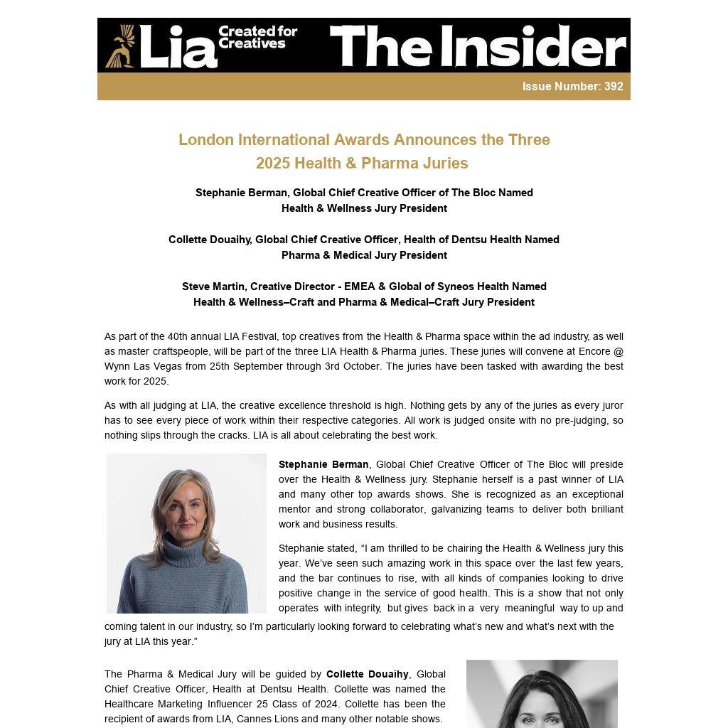 As part of the 40th annual LIA Festival, top creatives from the Health & Pharma space within the ad industry, as well as master craftspeople, will be part of the three LIA Health & Pharma juries. These juries will convene at Encore @ Wynn Las Vegas from 25th September through 3rd October. The juries have been tasked with awarding the best work for 2025.