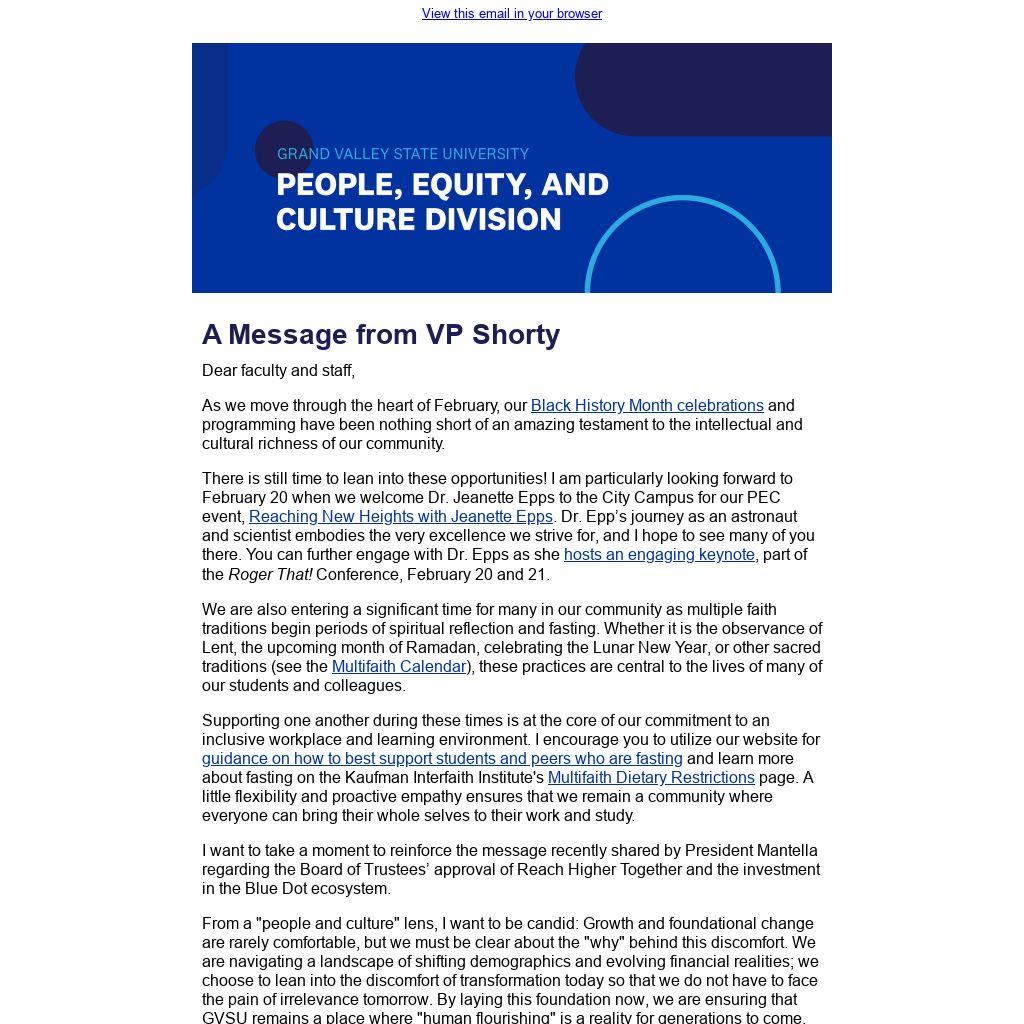 From a "people and culture" lens, I want to be candid: Growth and foundational change are rarely comfortable, but we must be clear about the "why" behind this discomfort. We are navigating a landscape of shifting demographics and evolving financial realities; we choose to lean into the discomfort of transformation today so that we do not have to face the pain of irrelevance tomorrow. By laying this foundation now, we are ensuring that GVSU remains a place where "human flourishing" is a reality for generations to come.