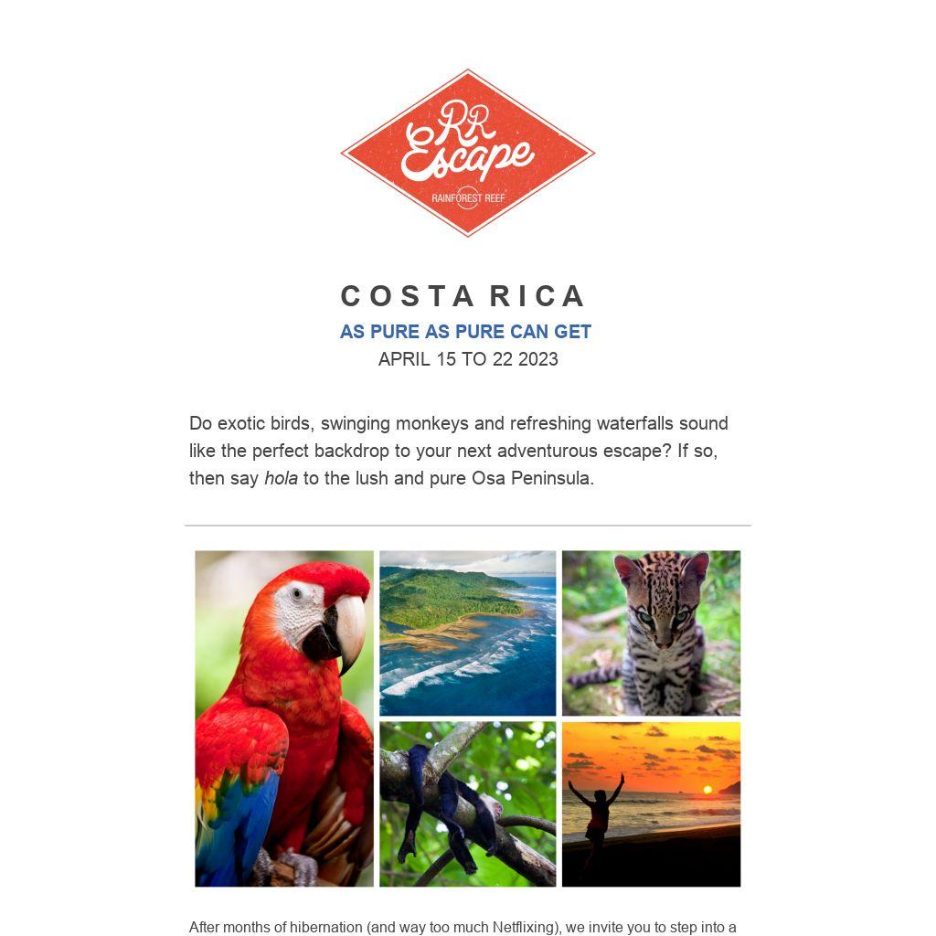 Cue the small print: Trip is quoted in USD to reflect actual prices in Costa Rica. Taxes included. PayPal/Credit card fees extra. We willl book your domestic flights and will add 270US to your final payment. The accommodation is based on double occupancy in San José and double or multiple occupancy on the Osa (our cabanas are spacious and you'll likely appreciate having someone close by in this new yet totally safe environment!) Don't have a travel partner? We'll do our best to pair you with a great roommate. Private upgrades may be available in San Jose with a single supplement fee added to your package and private or semi-private upgrades at Ojo Del Mar may be available with no supplement added and will be offered on a first come basis. More reason to book early!