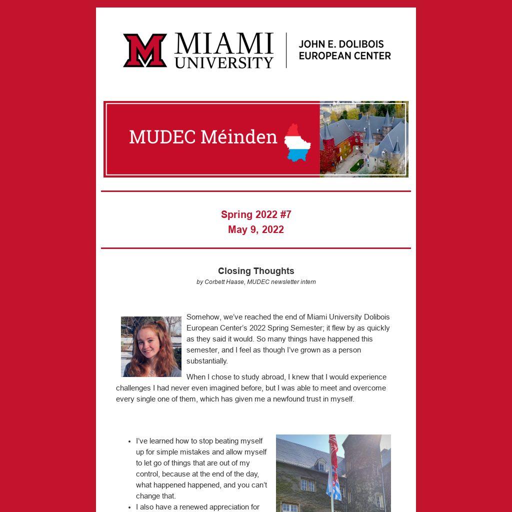 Editor's note: And to all our spring semester MUDEC students, au revoir et bonne chance! Beginning May 23, look for our summer newsletters, authored by MUDEC staff.