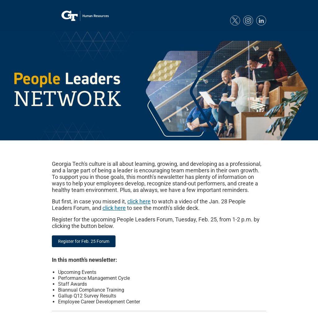 Register for the upcoming People Leaders Forum, Tuesday, Feb. 25, from 1-2 p.m. by clicking the button below.