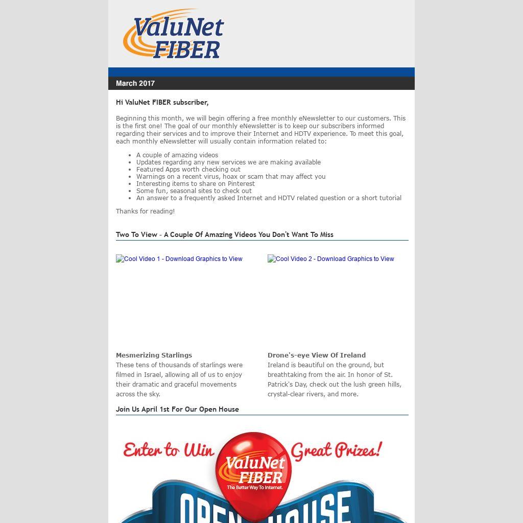 Beginning this month, we will begin offering a free monthly eNewsletter to our customers. This is the first one! The goal of our monthly eNewsletter is to keep our subscribers informed regarding their services and to improve their Internet and HDTV experience. To meet this goal, each monthly eNewsletter will usually contain information related to: