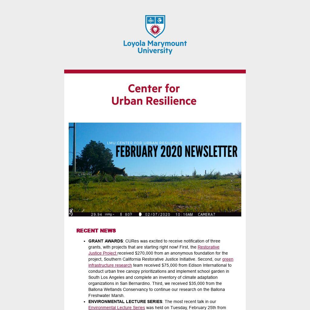 UPCOMING EVENTS- GNG GREEN EARTH FILM FESTIVAL: CURes is co-hosting the 7th Annual GNG Green Earth Film Festival alongside the Gottlieb Native Garden and LMU's School of Film and Television! The festival will take place at LMU's Playa Vista Campus on April 4th-5th. The program for this weekend includes screenings of environmental films from both our students and our finalists, a guided nature-meditation, and a fun closing night party! Register for tickets now.
