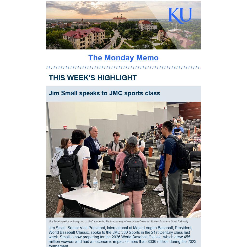 Jim Small, Senior Vice President, International at Major League Baseball; President, World Baseball Classic, spoke to the JMC 330 Sports in the 21st Century class last week. Small is now preparing for the 2026 World Baseball Classic, which drew 455 million viewers and had an economic impact of more than $336 million during the 2023 tournament.