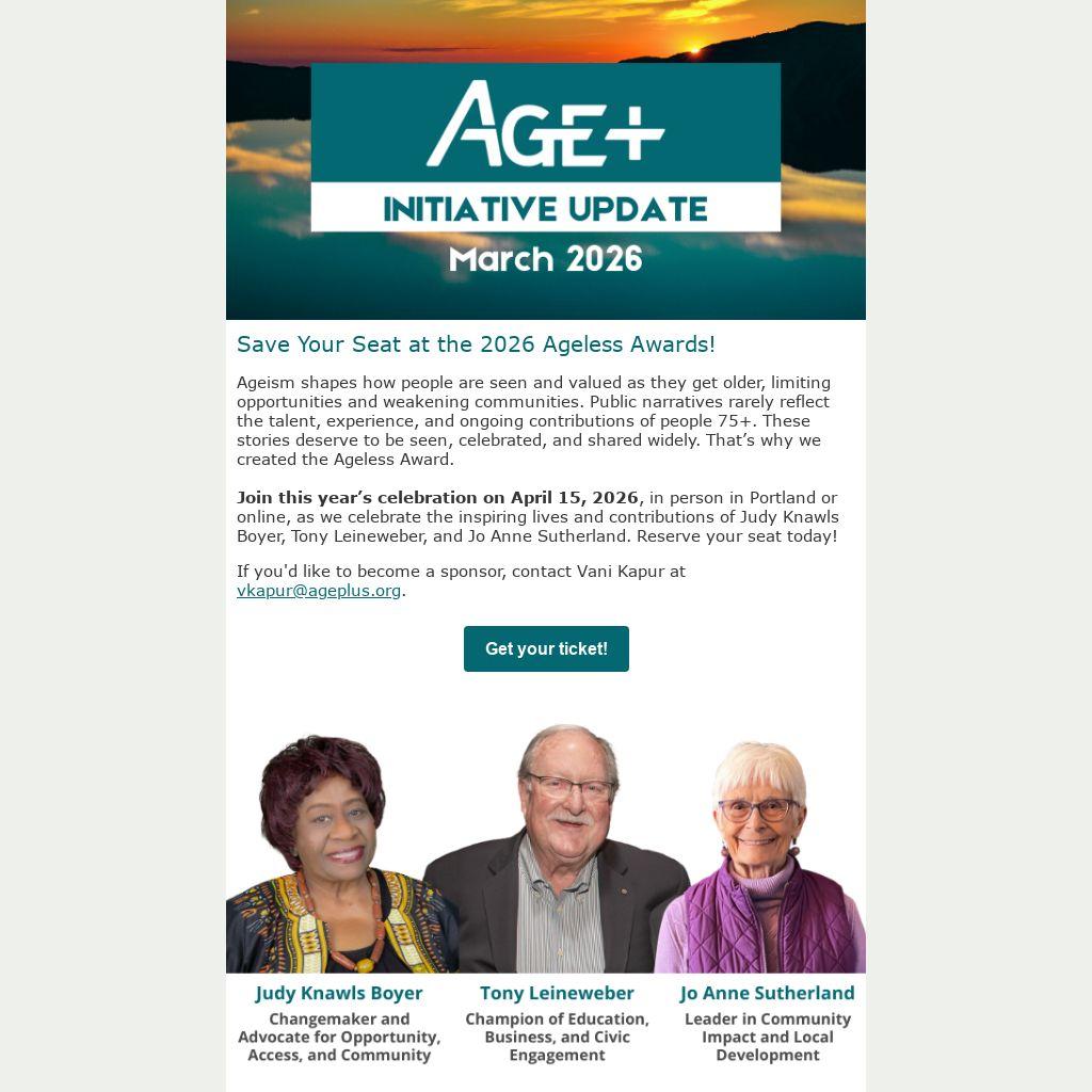 Save Your Seat at the 2026 Ageless Awards!