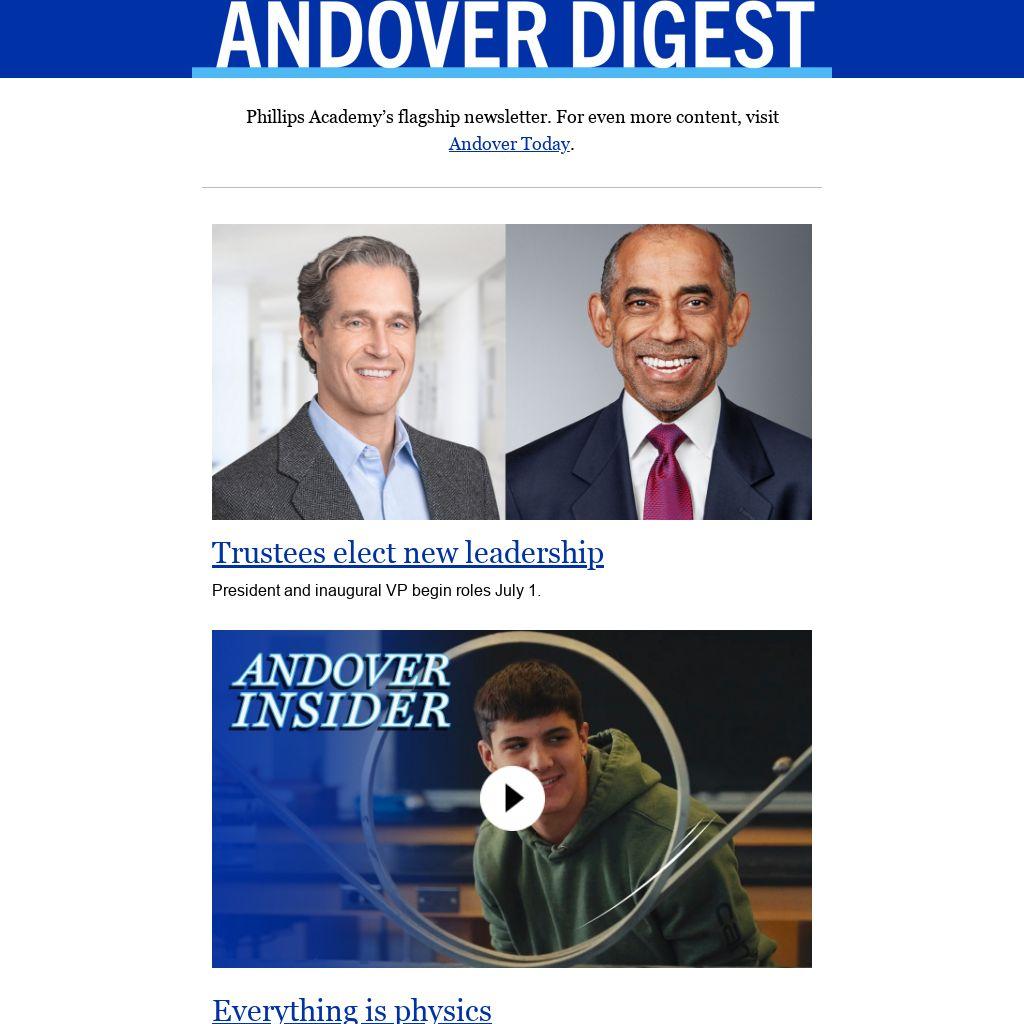 Phillips Academy’s flagship newsletter. For even more content, visit Andover Today.