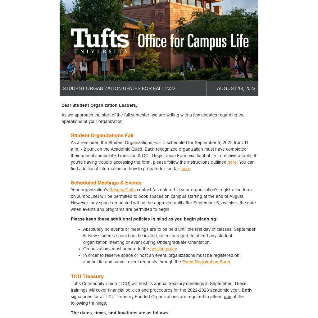 Tufts Community Union (TCU) will host its annual treasury meetings in September. These trainings will cover financial policies and procedures for the 2022-2023 academic year. Both signatories for all TCU Treasury Funded Organizations are required to attend one of the following trainings: