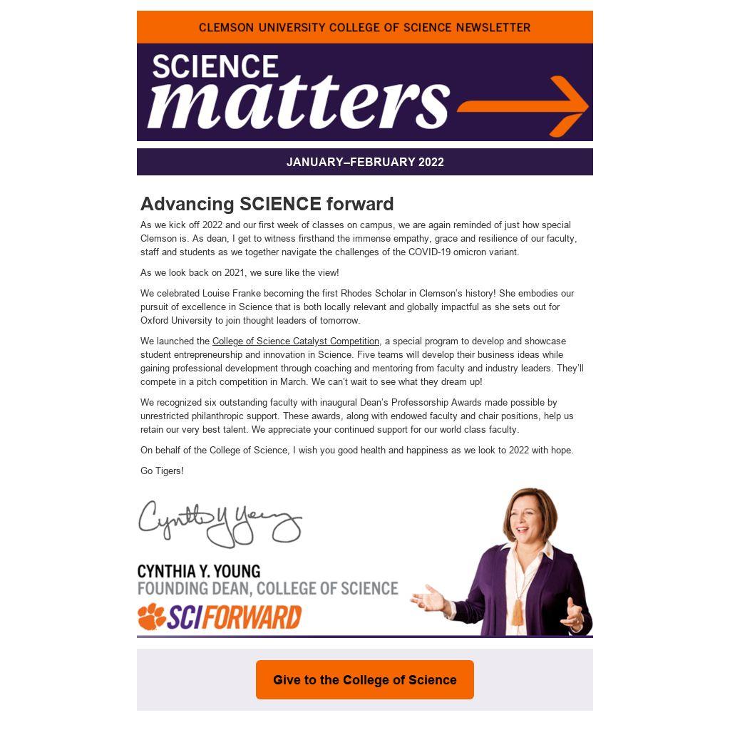 As we kick off 2022 and our first week of classes on campus, we are again reminded of just how special Clemson is. As dean, I get to witness firsthand the immense empathy, grace and resilience of our faculty, staff and students as we together navigate the challenges of the COVID-19 omicron variant.