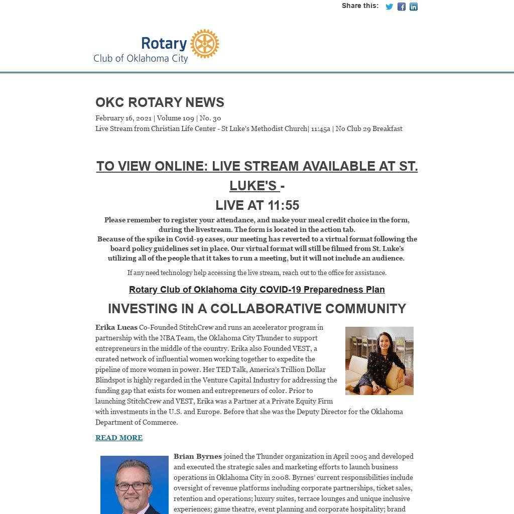 | OKC Rotary NewsFebruary 16, 2021 | Volume 109 | No. 30