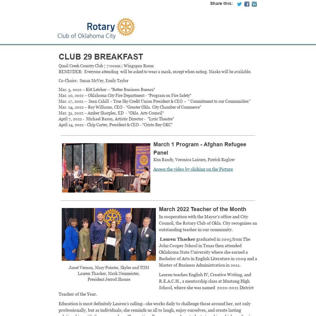 In cooperation with the Mayor's office and City Council, the Rotary Club of Okla. City recognizes an outstanding teacher in our community.