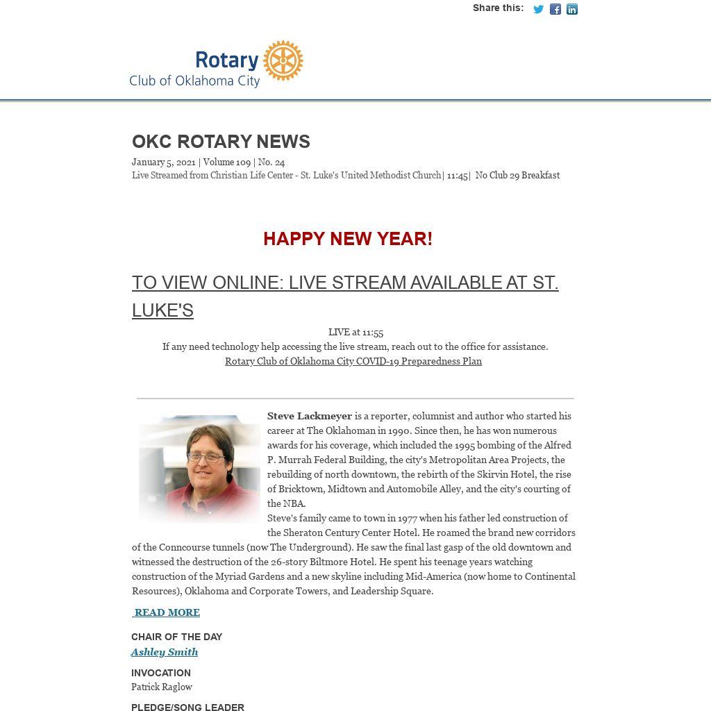 | OKC Rotary NewsJanuary 5, 2021 | Volume 109 | No. 24
