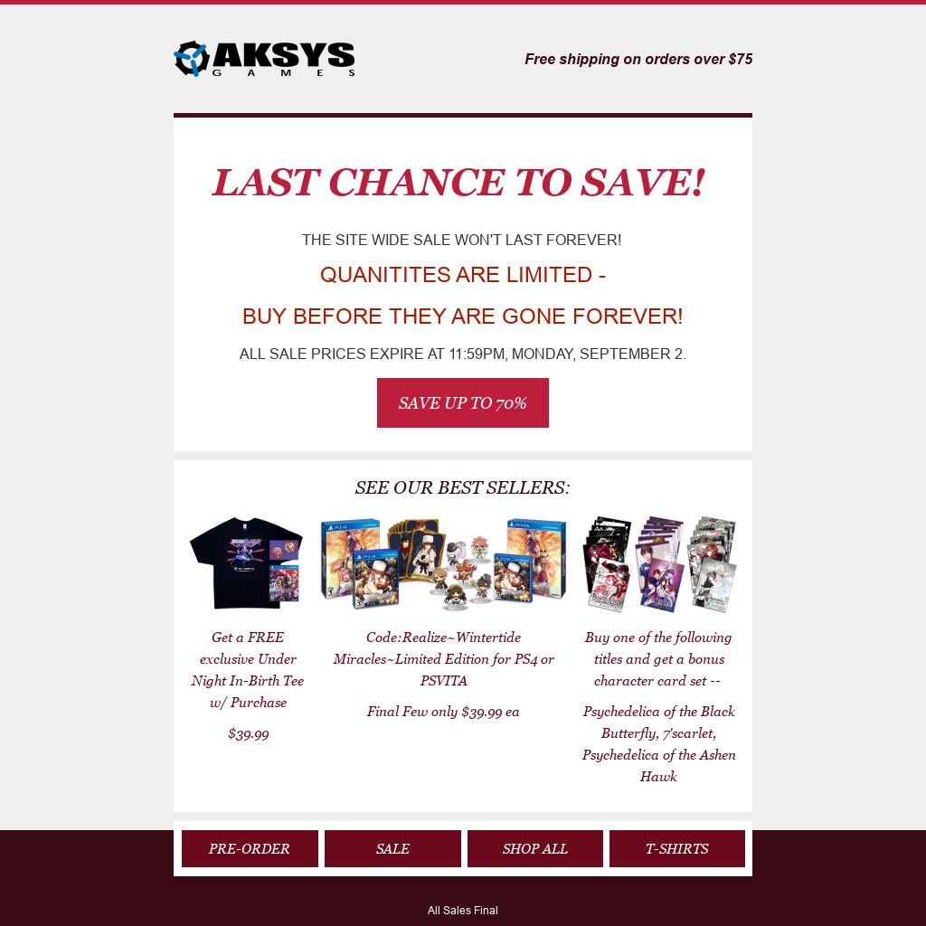 ALL SALE PRICES EXPIRE AT 11:59PM, MONDAY, SEPTEMBER 2.