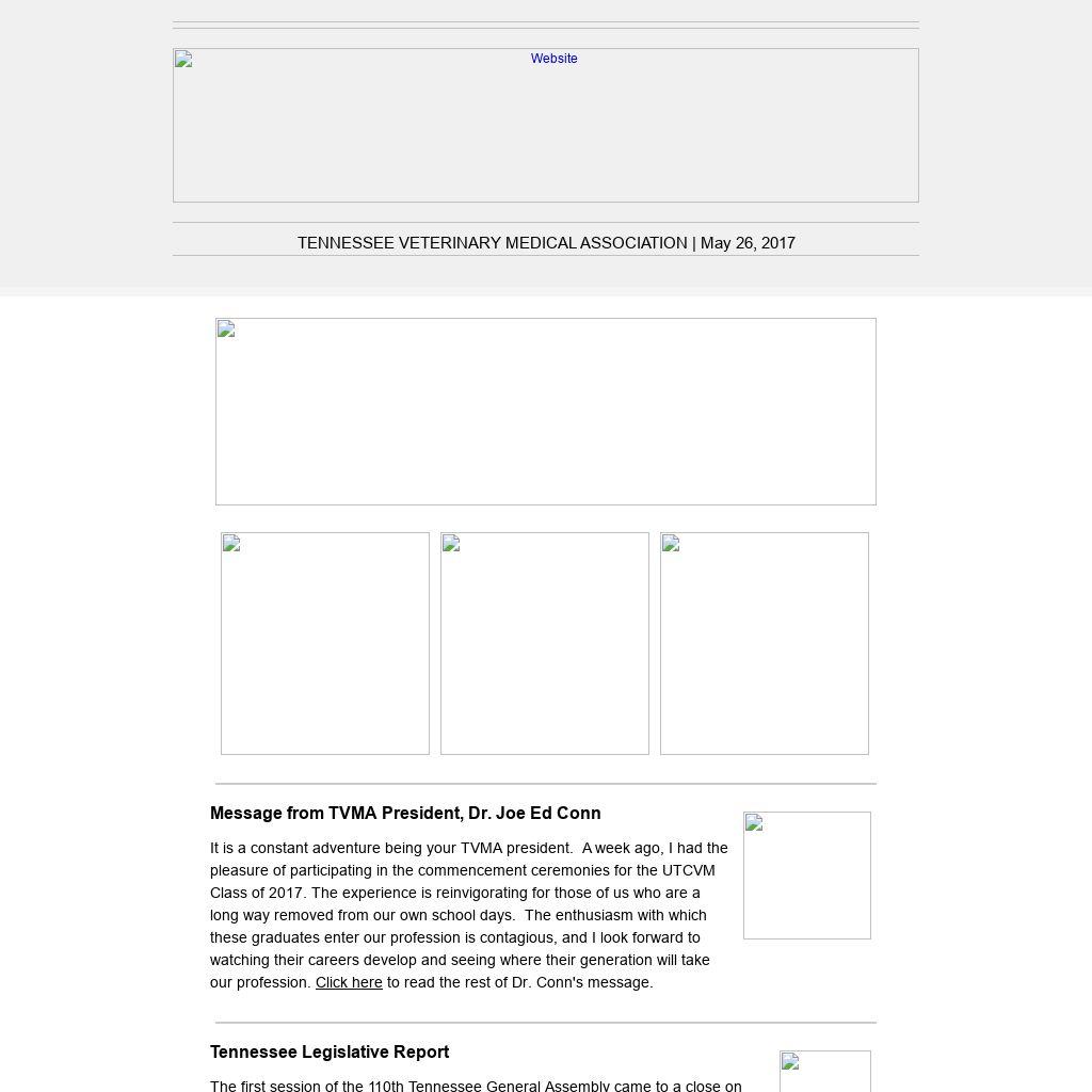 | Message from TVMA President, Dr. Joe Ed Conn It is a constant adventure being your TVMA president. A week ago, I had the pleasure of participating in the commencement ceremonies for the UTCVM Class of 2017. The experience is reinvigorating for those of us who are a long way removed from our own school days. The enthusiasm with which these graduates enter our profession is contagious, and I look forward to watching their careers develop and seeing where their generation will take our profession. Click here to read the rest of Dr. Conn's message.
