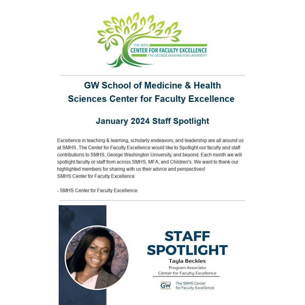 Excellence in teaching & learning, scholarly endeavors, and leadership are all around us at SMHS. The Center for Faculty Excellence would like to Spotlight our faculty and staff contributions to SMHS, George Washington University, and beyond. Each month we will spotlight faculty or staff from across SMHS, MFA, and Children's. We want to thank our highlighted members for sharing with us their advice and perspectives!