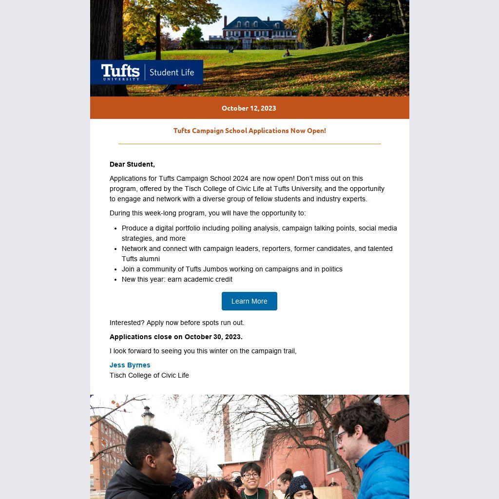 Tufts Campaign School Applications Now Open! |