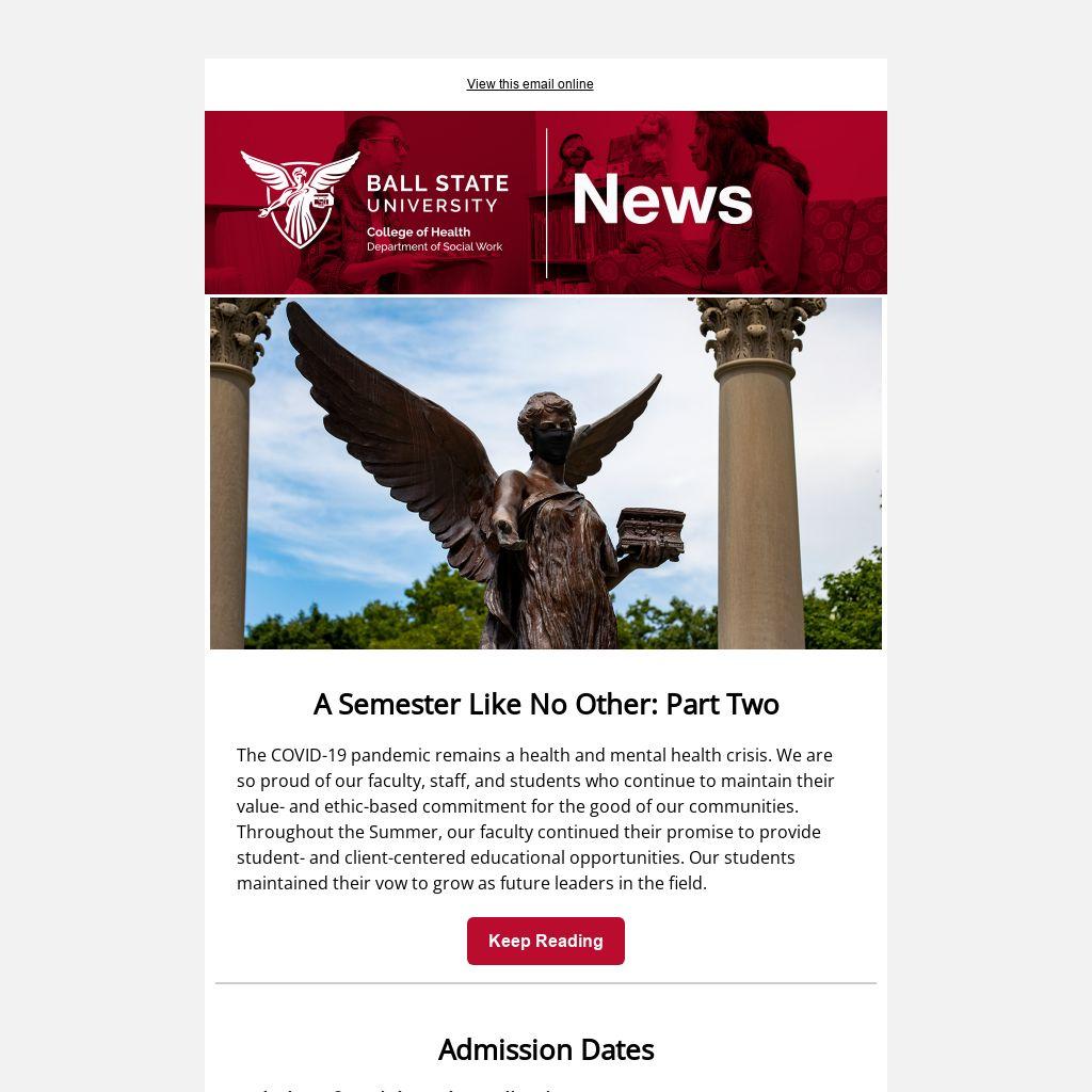 While we could not have a formal ceremony for our undergraduate program, we are thrilled to announce 20 new graduated change agents. These students successfully completed all of their degree requirements, including a variety of unique practicum arrangements. Students from this graduating class are attending graduate programs across the country (including the Ball State MSW Program) and entering the job market as essential workers.