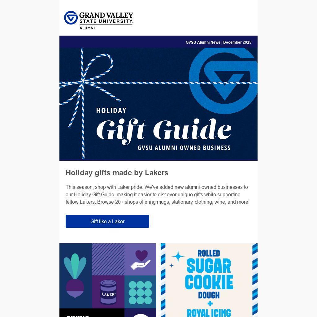 This season, shop with Laker pride. We've added new alumni-owned businesses to our Holiday Gift Guide, making it easier to discover unique gifts while supporting fellow Lakers. Browse 20+ shops offering mugs, stationary, clothing, wine, and more!