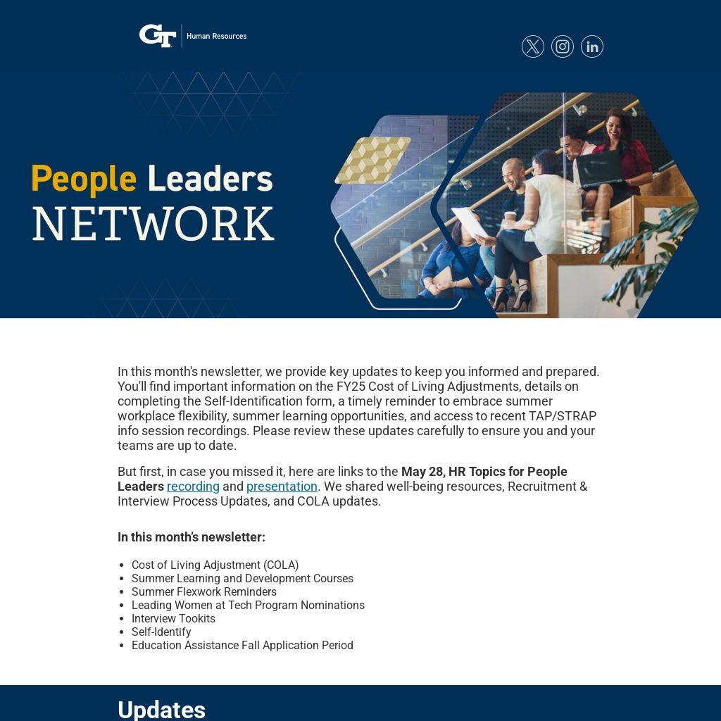 In this month's newsletter, we provide key updates to keep you informed and prepared. You'll find important information on the FY25 Cost of Living Adjustments, details on completing the Self-Identification form, a timely reminder to embrace summer workplace flexibility, summer learning opportunities, and access to recent TAP/STRAP info session recordings. Please review these updates carefully to ensure you and your teams are up to date.