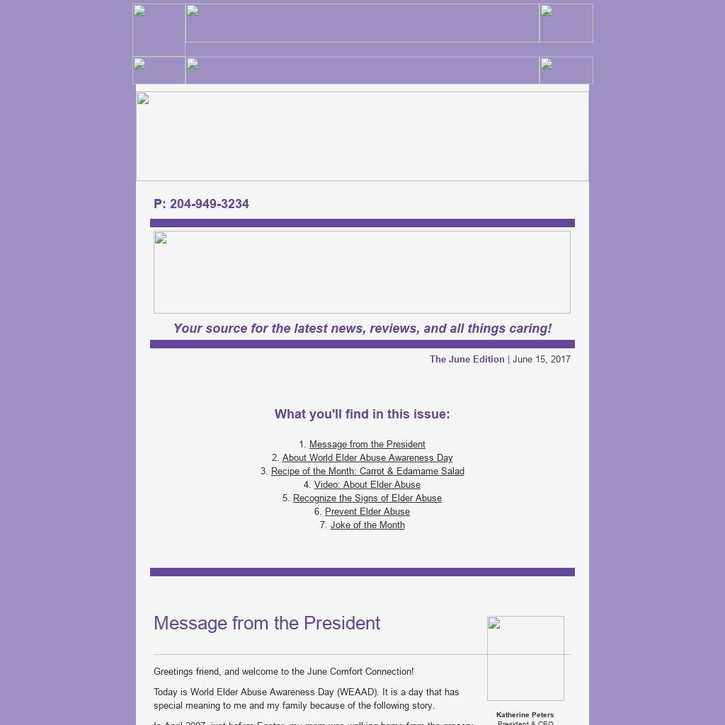 Greetings friend, and welcome to the June Comfort Connection!