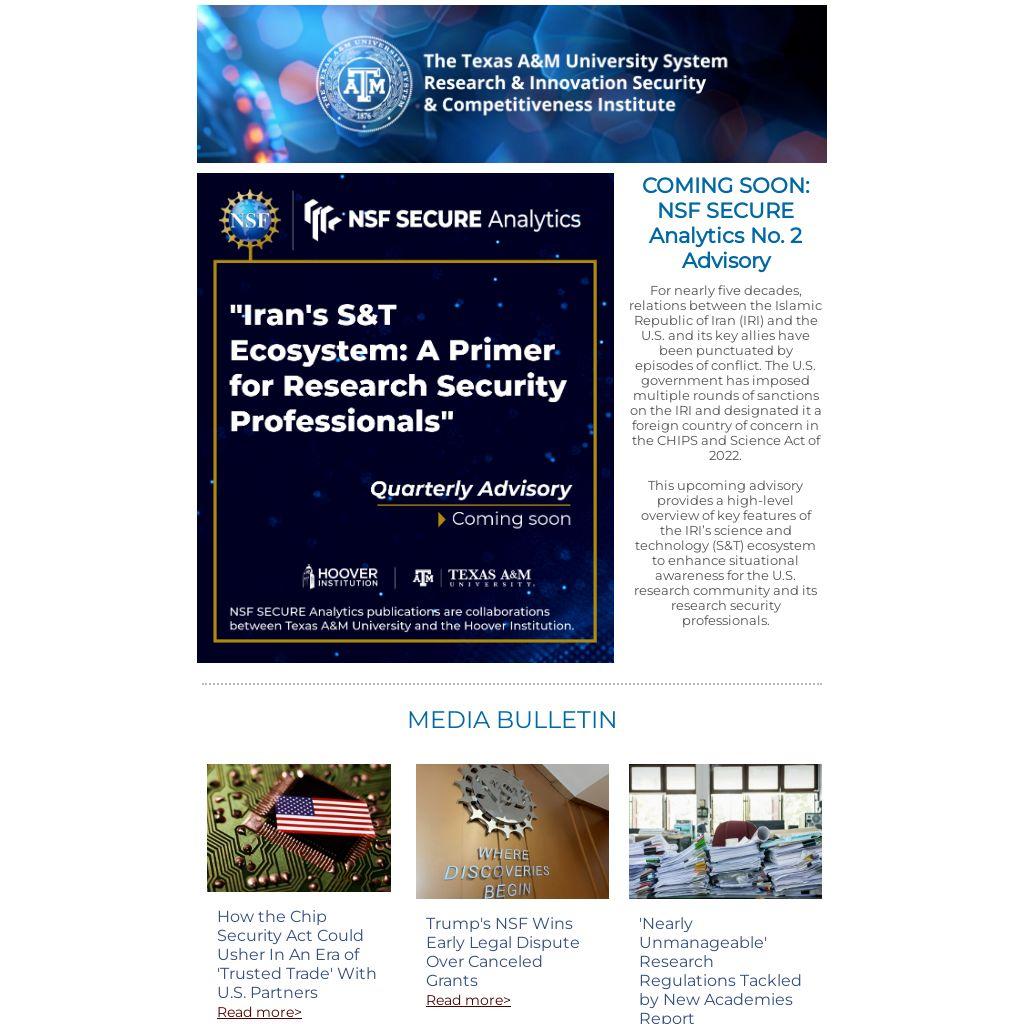 | COMING SOON: NSF SECURE Analytics No. 2 Advisory