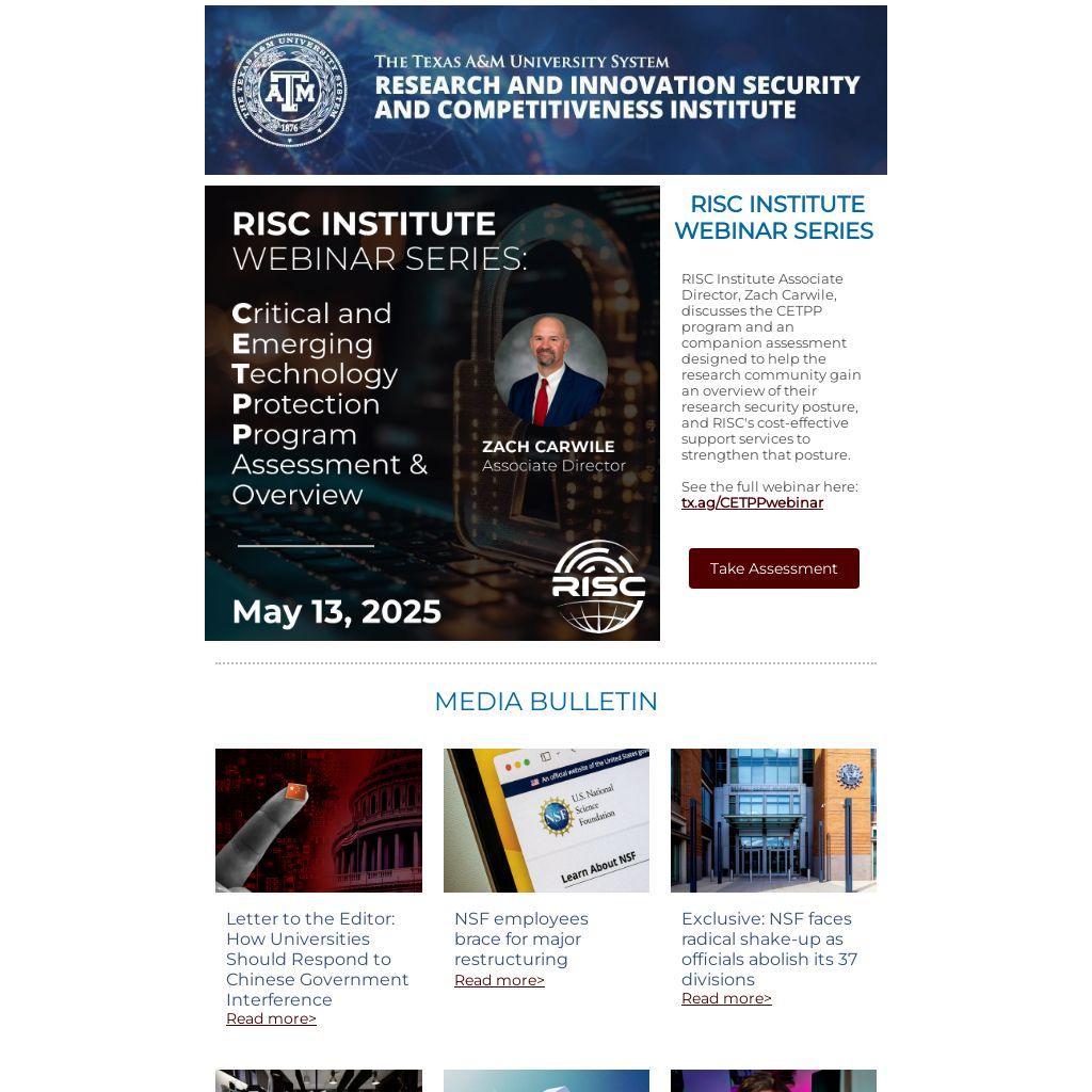 RISC Institute Associate Director, Zach Carwile, discusses the CETPP program and an companion assessment designed to help the research community gain an overview of their research security posture, and RISC's cost-effective support services to strengthen that posture.
